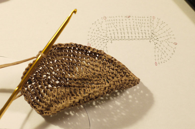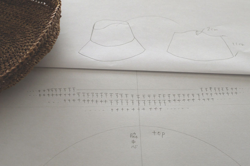 話はそれましたが、、、ラフィアの帽子の編み方、編み図など、自分なりにやってみたことを紹介します。