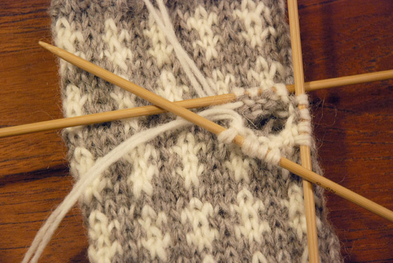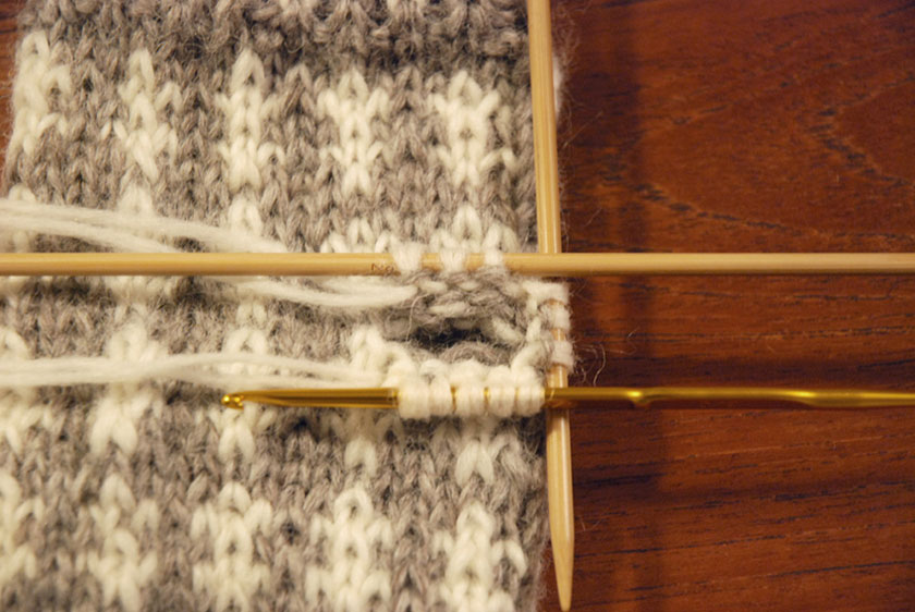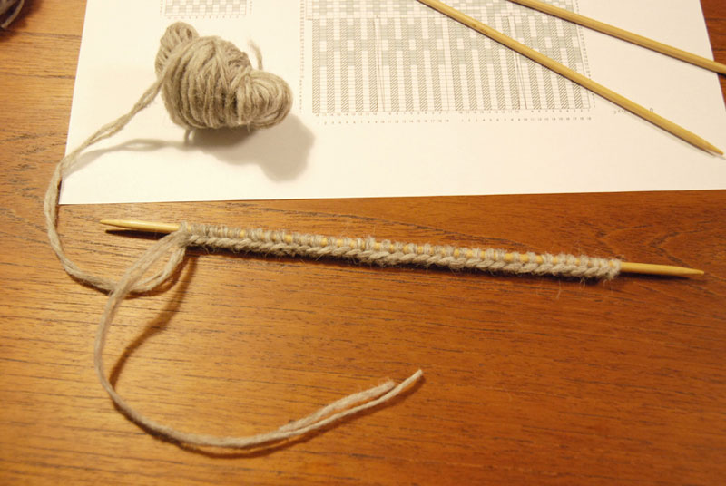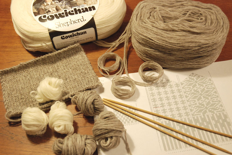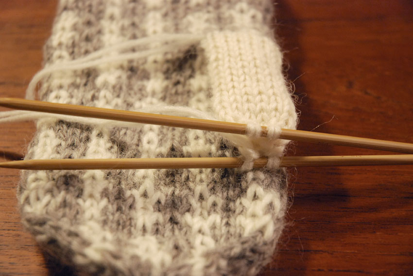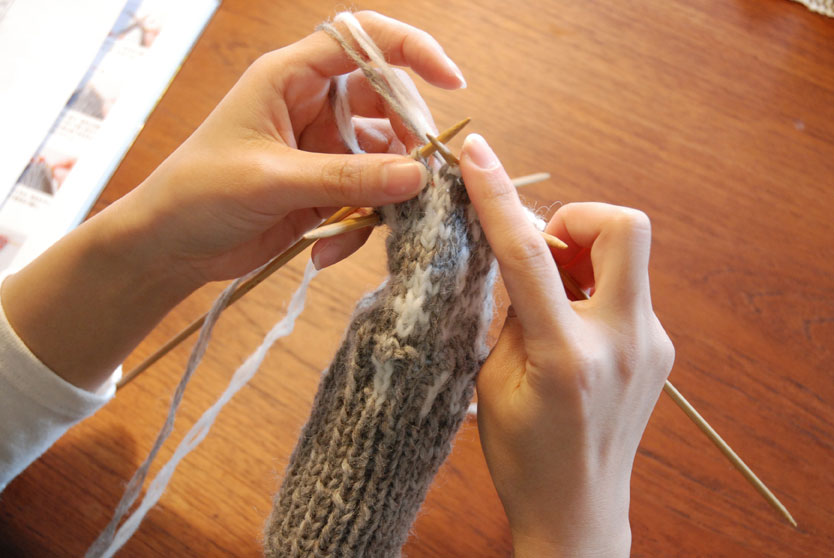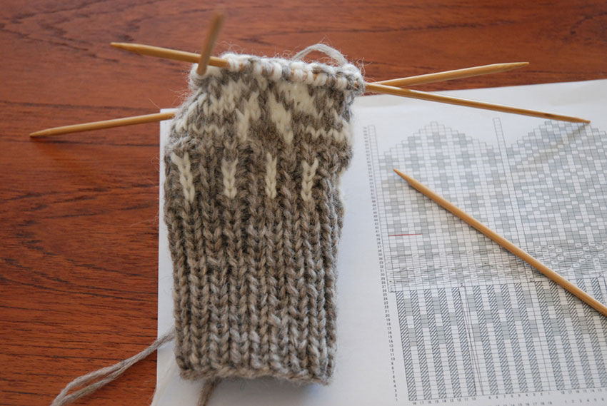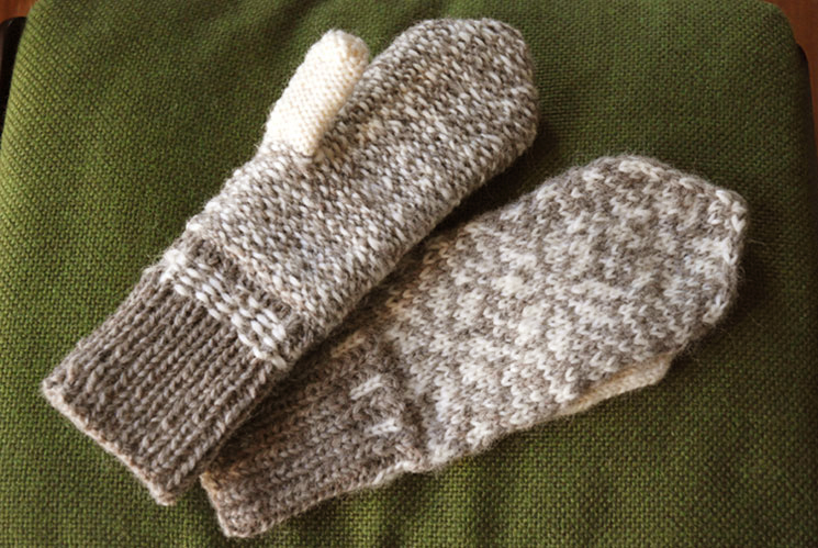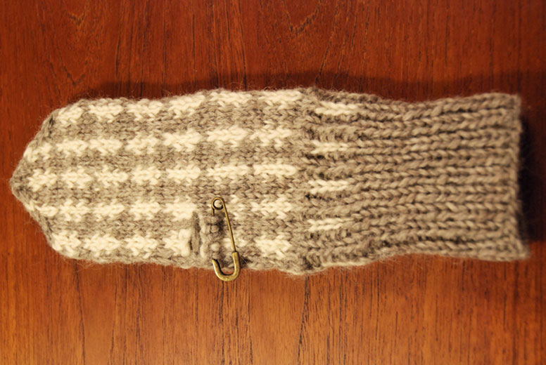 カウチンベストを以前編んだおかげで、裏糸の編み込みが上手くできた。本来ミトンでやらなくていいんだけど、癖がついてやらずにはいられなかった・・・。
