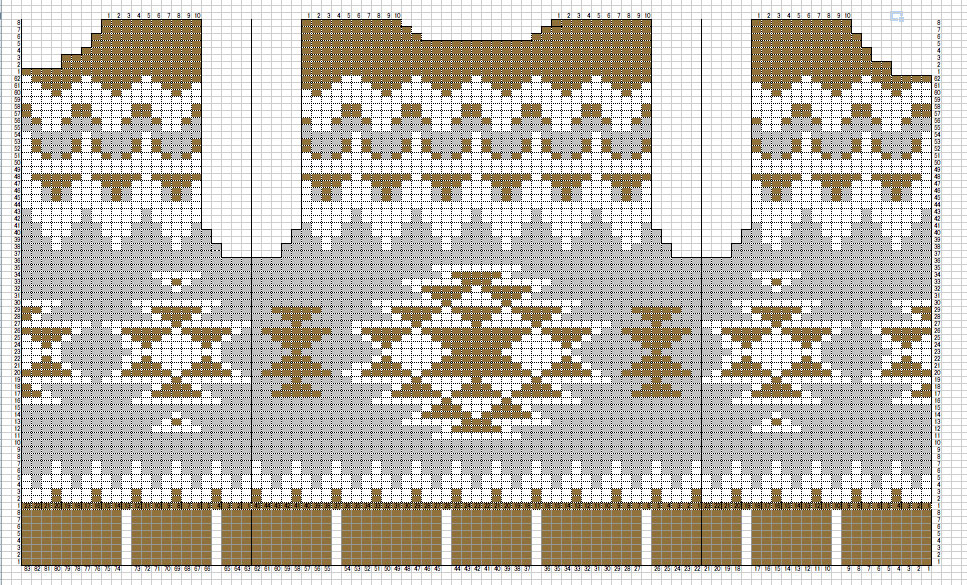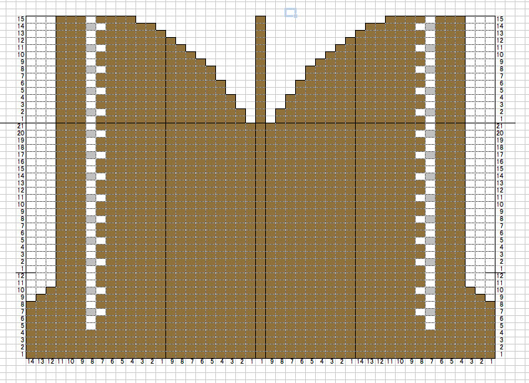 柄はexcelで、セルをすごく小さくした方眼をつくり、セルに色を塗って柄を描きました。