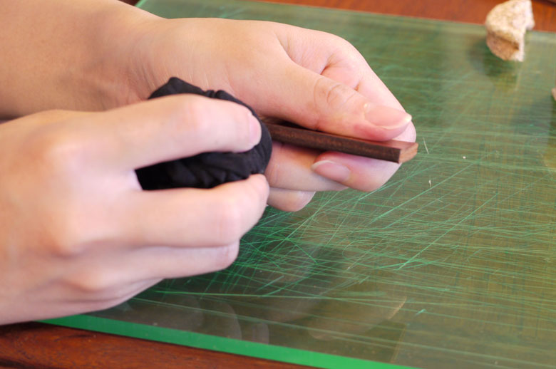 アイロンで蜜蝋を溶かし、アイロンに付いた液状の蜜蝋を塗り込んでみる。