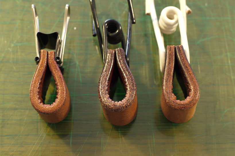 コバの処理で「焼き締め」というのがあります。初めてやってみたけど、やはり繊維が締まった感じがあり、なかなか良いと思いました。ただ、温度やアイロンをあてる加減ですぐ焦げてしまうので、そこを気をつけないといけないです。