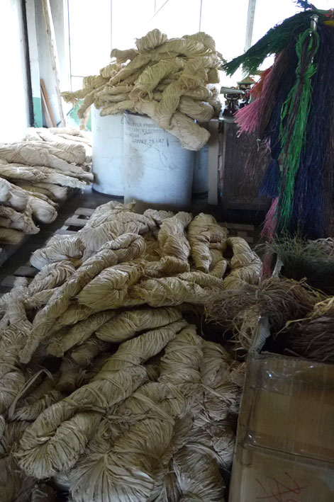 糸作りで気づいたことは、乾燥した葉を何度も擦ってるのだから、例えば笹の葉みたいに手を切ったりしないのかとちょっと心配だったのだけど、手が荒れることは全くないし、むしろ微妙な油分?のおかげで、指先がつやつやしてくる感じがします。しかも、強い。どんなに引っ張っても切れることはほぼないです。ラフィアの繊維は非常に強くて、永い月日が経ってもその強さはほとんど衰えないそうですよ。そこがラフィアの魅力なんでしょうね。
