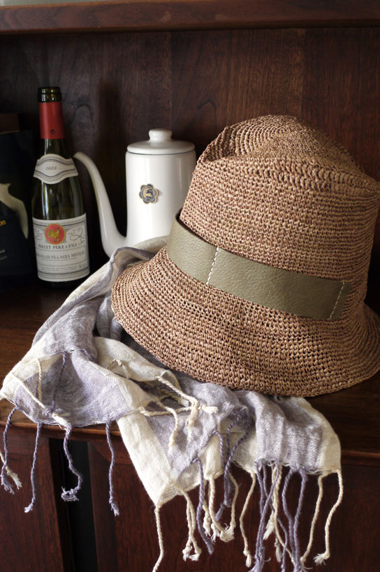 そして思ったのが、ラフィアのかぎ針編みの帽子は意外にいろんなところで売っているということ。しかも、困ったことに安い。1万円以下はあたりまえです。どう考えても手編みなのに、なぜこの値段??海外生産で、物価が安い国なんだろうけど、これを編んでる人達はちゃんと生活できる賃金をもらってるのかな?とか、自分で編んでみたものだからその苦労がわかり、勝手に心配したりして。
